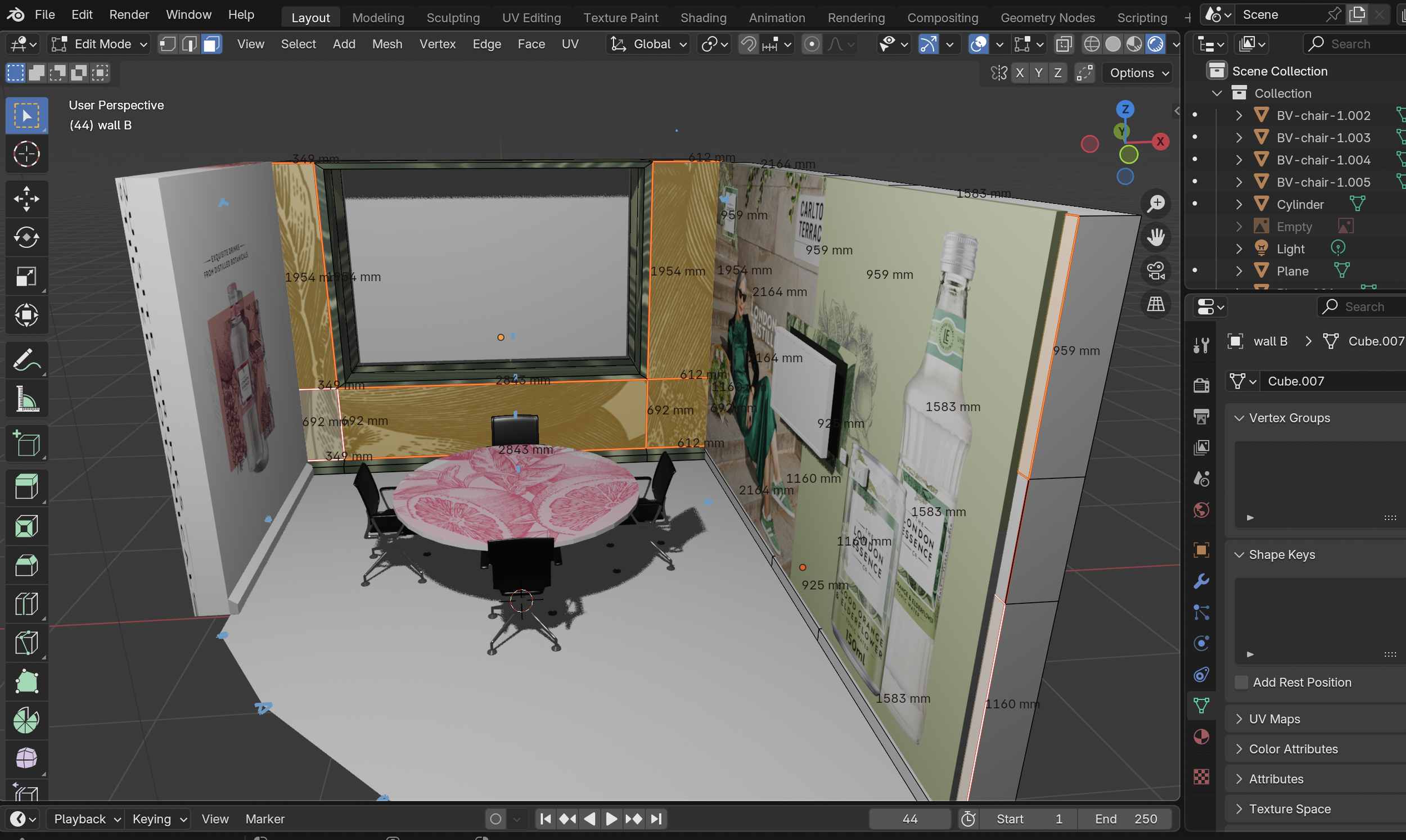 This project was an exciting opportunity that allowed me to further develop my skills in 3D design and life-scale spatial planning. I designed the room’s walls and overall style in alignment with London Essence’s brand guidelines, ensuring the space conveyed the brand’s refined identity while remaining professional and functional for meetings. The goal was to strike a balance between immersive brand storytelling and a polished, corporate environment.